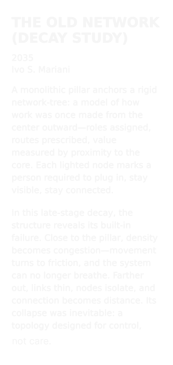 The experience is framed as a retrospective from the future: as if you are visiting the exhibition ten years from now, looking back on the present as the moment when the rules began to change. It’s a deliberate pretense—an archival stance—meant to make today feel observable, even strange, through the distance of time.