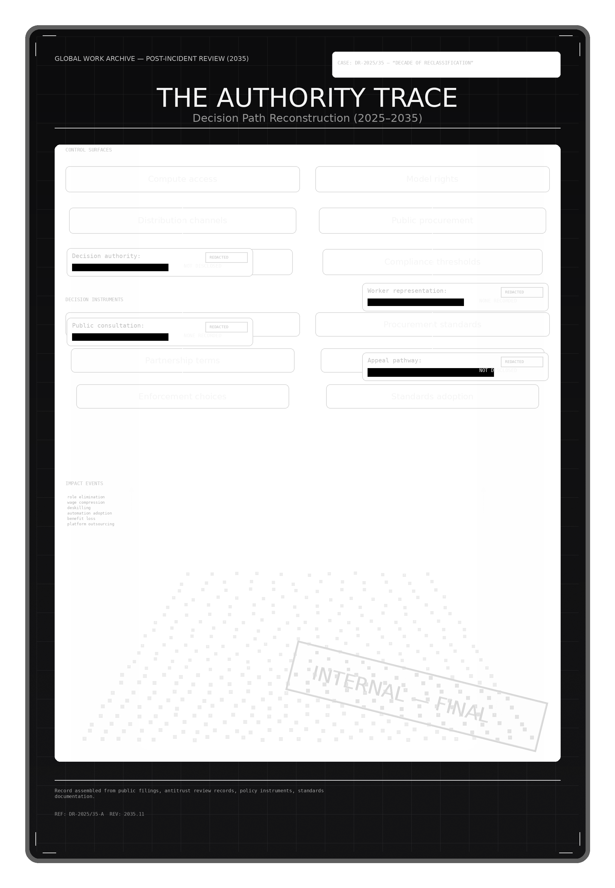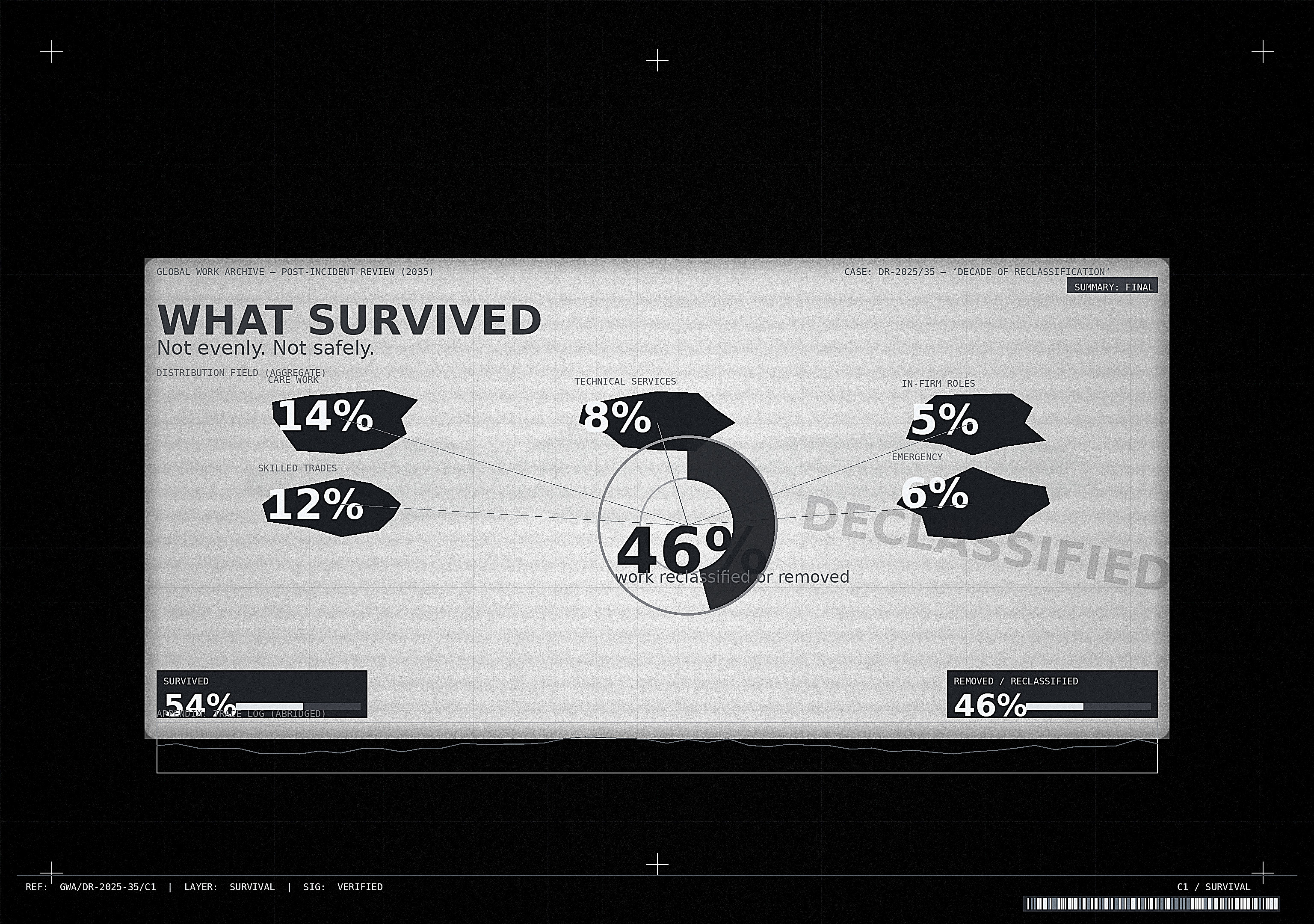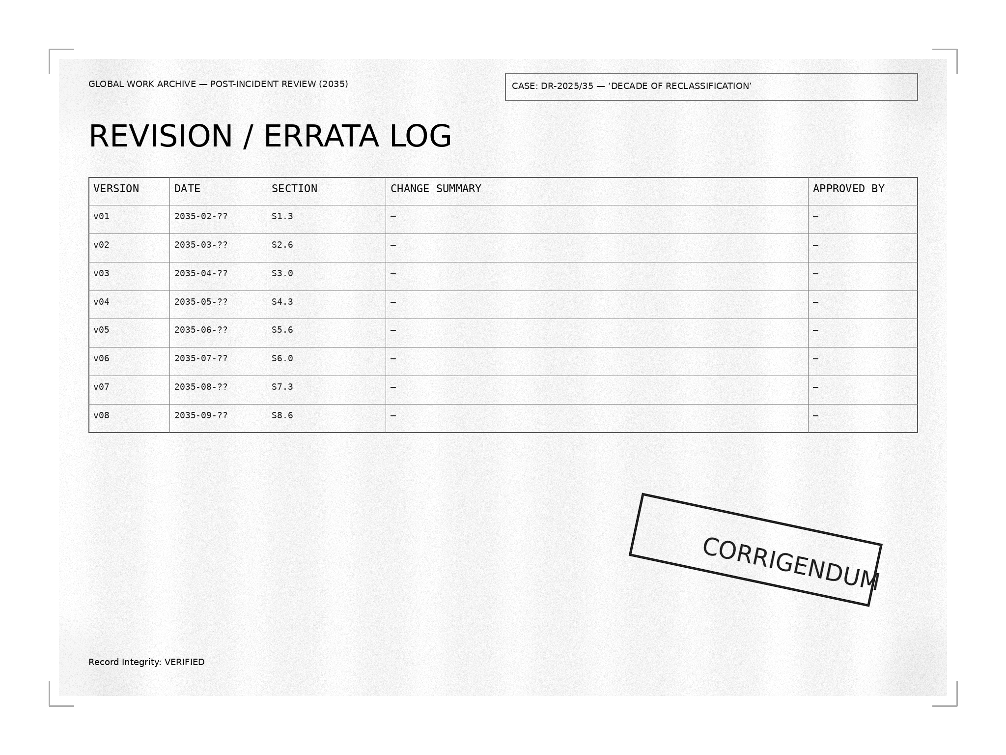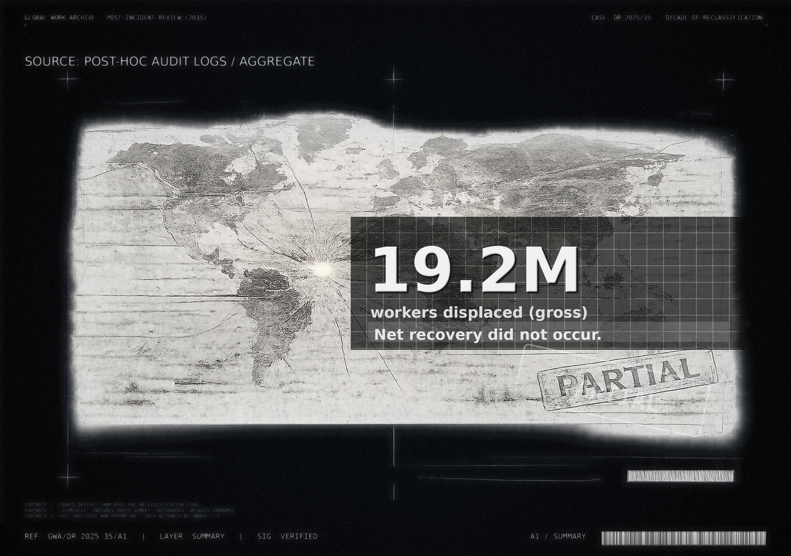 ERA ORA — BEYOND THE BOOK is an exhibition about disruption in the world of work—how roles, identities, and everyday systems shift under technological change, and what gets reclassified as “normal” after the shock.