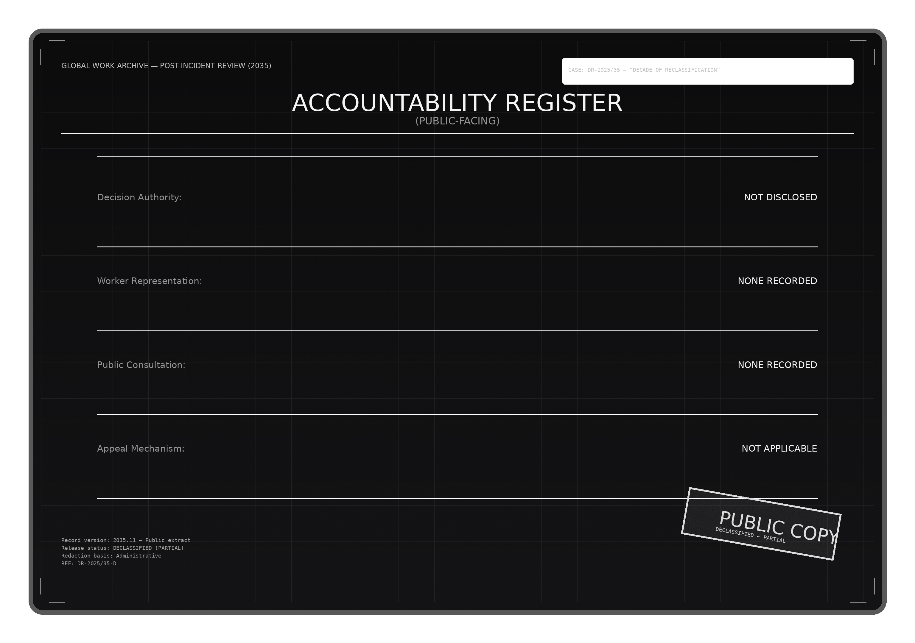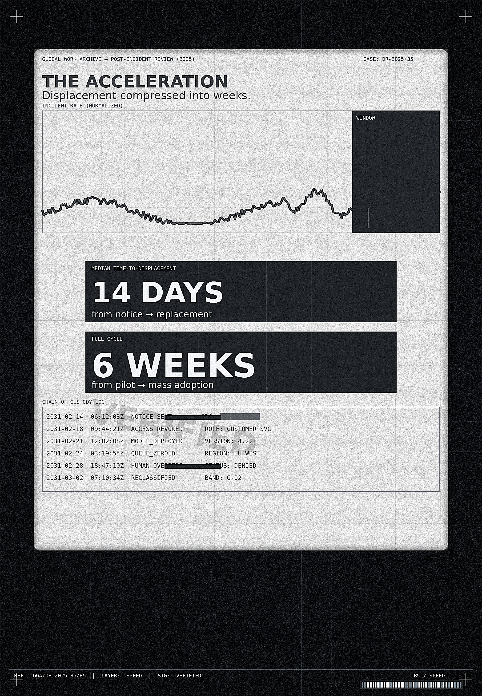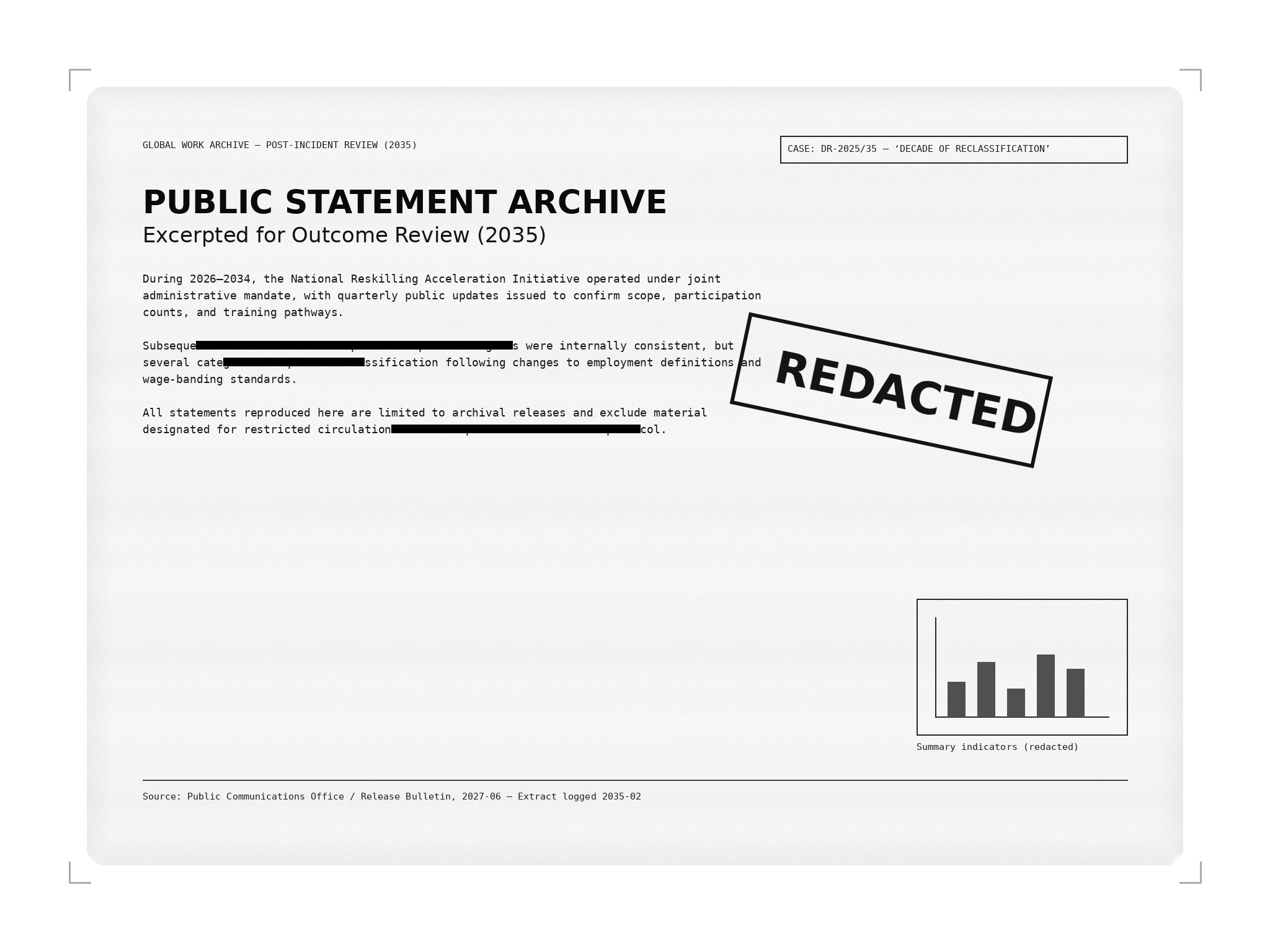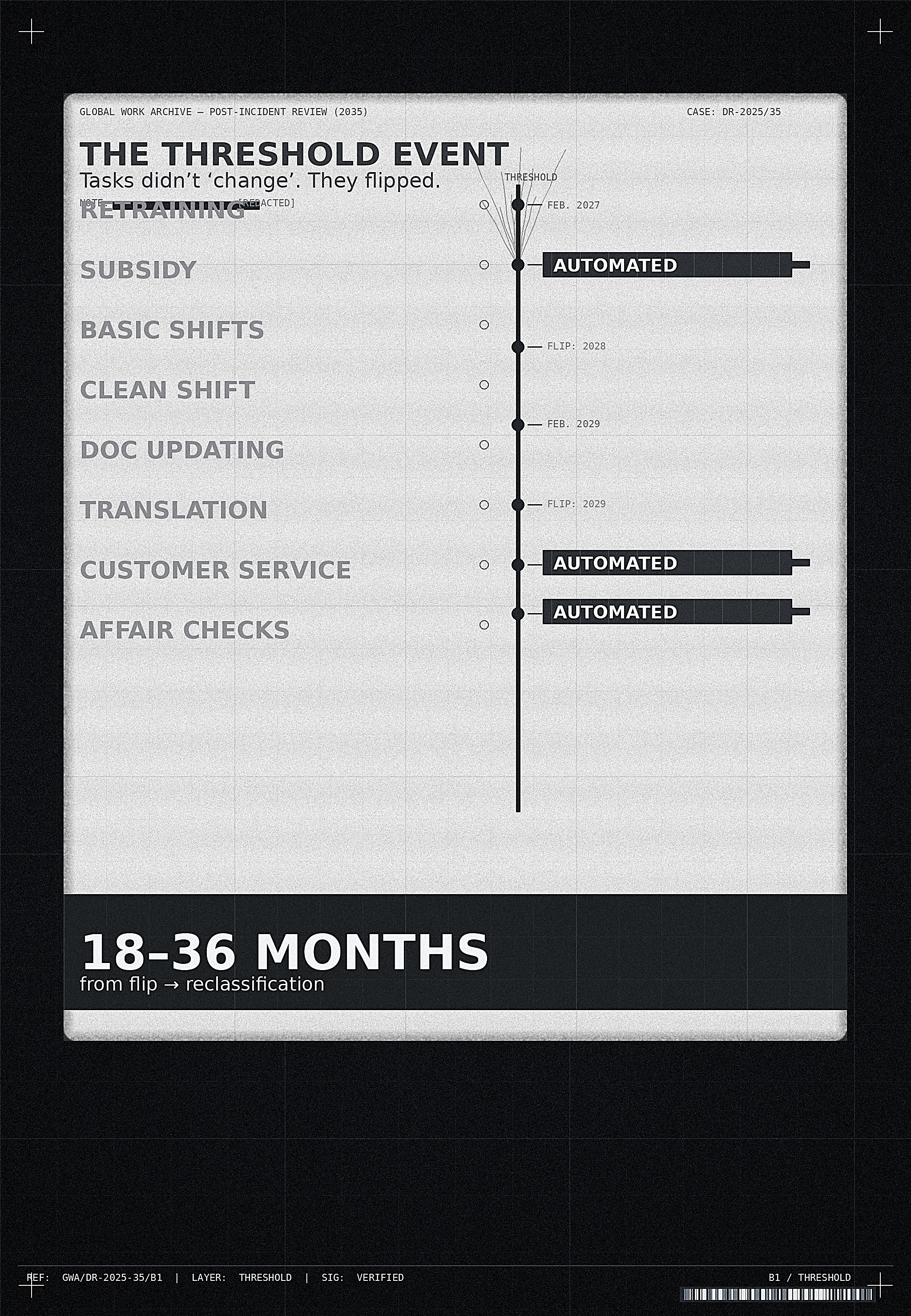 ERA ORA — BEYOND THE BOOK is an exhibition about disruption in the world of work—how roles, identities, and everyday systems shift under technological change, and what gets reclassified as “normal” after the shock.